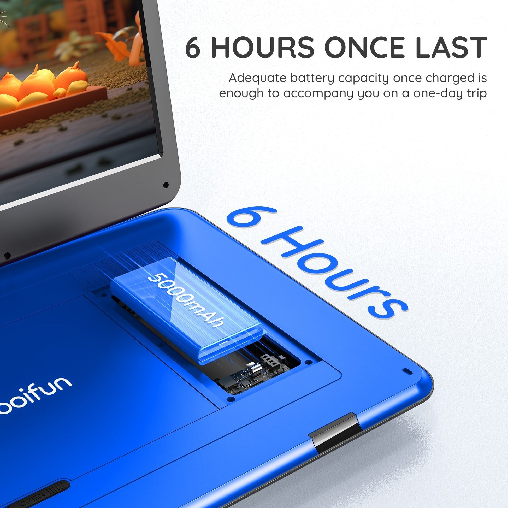 Uses a 15.6-inch HD swivel screen with a resolution of 1280 x 800. Long-term viewing-related visual fatigue can be alleviated with an upgraded screen. 180° flip and 270° rotation features of the portable dvd player for car allow for convenient positioning and an amazing viewing experience.