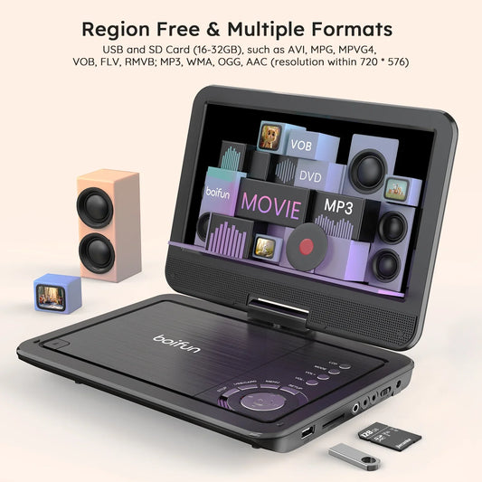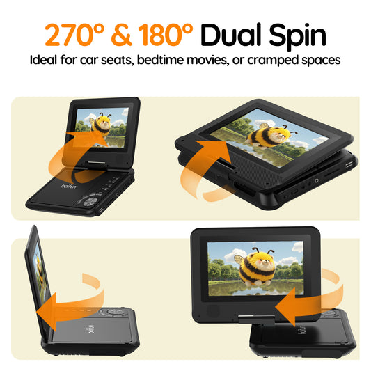 BOIFUN 9.5'' Portable DVD Player for Kids, 7.5'' Swivel Screen BFN-072 Black